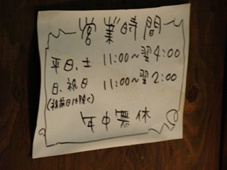 営業時間 11:00〜翌4:00(日祝日は翌2:00まで) 年中無休