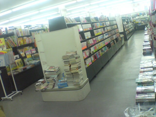 次にバランスもいい。入り口近くのまんが雑誌、話題新書の山から雑誌の列、ハードカバー新書、文庫、まんが単行本、まんが文庫、参考書、どれも多すぎず少なすぎない。