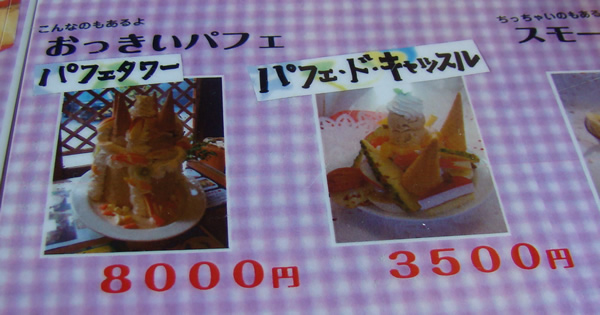ん……? 右下に、8000円のパフェがあるよ。寄ってみようか。