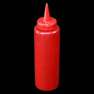 色は、赤・黄・透明の3種。サイズも大・中・小とあり、目的別(ケチャップ・マスタード・マヨネーズが一般だと思うのですがいかがでしょう)に選べる。価格もお手ごろで、中サイズで200円くらい。うっかり買いそうになる。